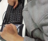 マウス操作ができない人は、キーボードまたは自分の身体の状態(口や足なら操作できるなど障害の状態)に合ったさまざまな機器で、操作をしています。※左写真はトラックボール